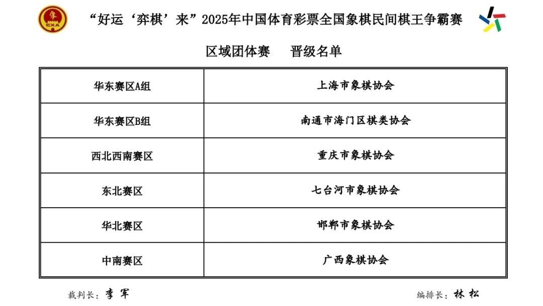 体彩棋王赛| 2025年全国象棋民间棋王争霸赛区域团体赛预选赛结束 6支晋级队伍出炉