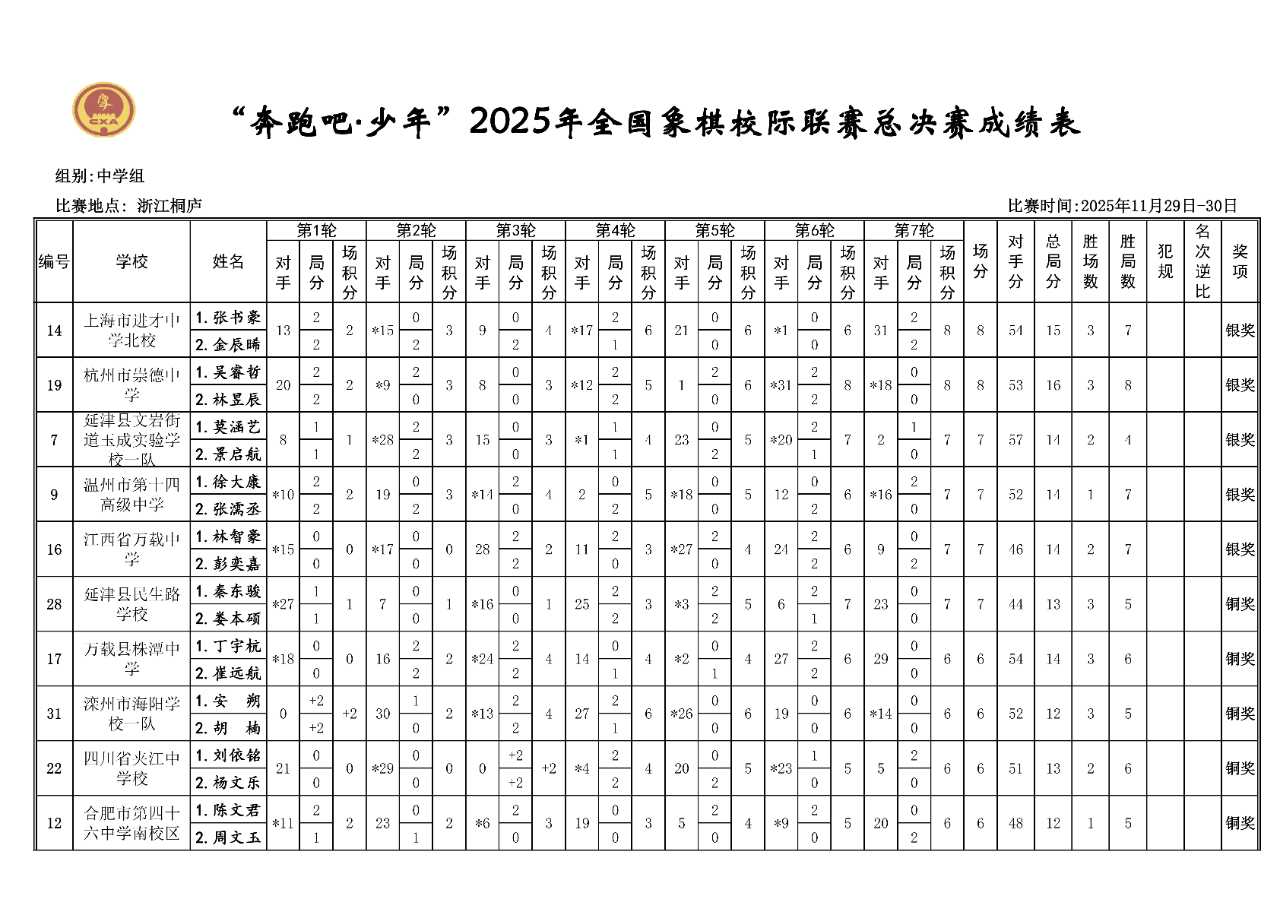 11月30日,为期一天半的“奔跑吧·少年”2025年全国象棋校际联赛总决赛在浙江桐庐落幕。赛事共分三个小学A组、小学B组、中学组三个组别,共有来自全国70所学校的327名小棋手参赛。