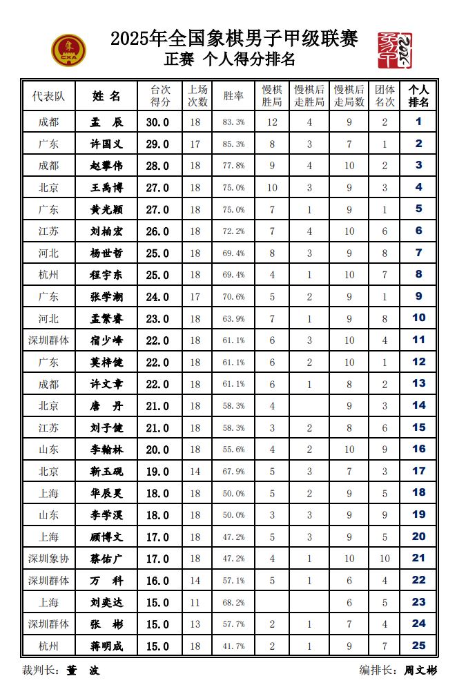 今年象甲联赛中,北京队以老带新,轻装上阵。比赛中,强力新星王禹博表现出色,排名个人第四,显示出色的单打能力。王禹博5岁学棋,2023年开始代表北京队征战象甲联赛。2024年底,在含金量颇高的“天天象棋杯”邀请赛上,他全胜夺冠,成为“00后”棋手中的翘楚。此外,北京队其他几位男将中,靳玉砚发挥抢眼,最终个人排名第十七,而么毅和金波也屡有贡献。