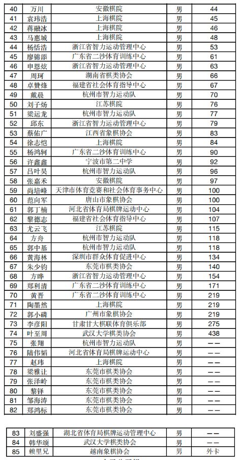 中国象棋协会关于公示第32届“五羊杯”全国象棋冠军赛参赛名单的通知