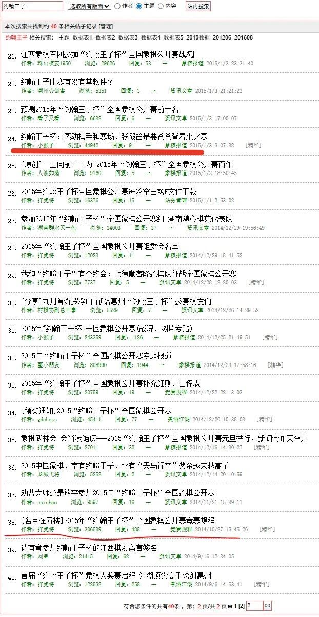 约翰王子杯40个热帖中的20个,见证当年象棋江湖的火爆人气:
