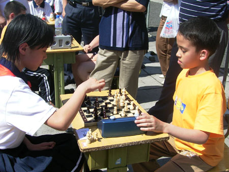新浪体育讯 5月28日,北京市朝阳区定福庄第四小学成功举办了“弘扬奥运精神 加强交流 广交朋友——定四小第十五届国际象棋节暨中外小朋友对抗赛”活动,来自美国、日本、新加坡、澳大利亚、巴勒斯坦、中国台湾、中国香港及青少年活动中心、定福庄四小的学生共计260多名选手参加了比赛。团中央宣传部吕通义、朝阳区教委马金东副主任、张朝晖委员、朝阳区精神文明办兰学军主任、中国棋院杨采奕、王甲和、孙连治、北京棋院刘乃刚、王品璋、朝阳区社体中心于涛主任、三间房地区办事处明宝萍书记、管庄学区王秀平书记等有关领导参加此次活动。
