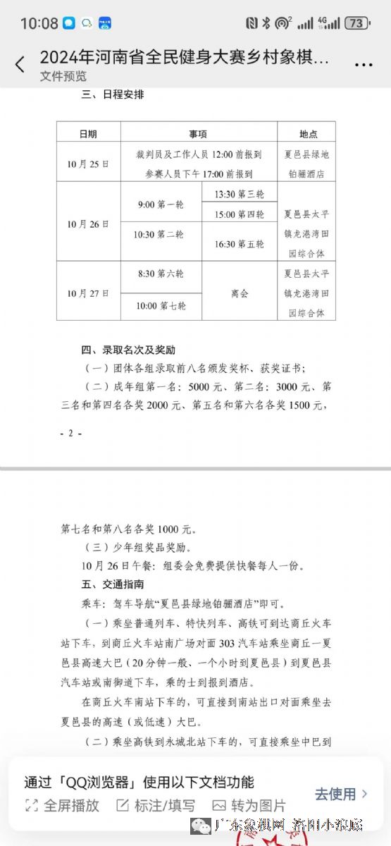 2024年河南省全民健身大赛乡村象棋棋王争霸赛赛况
