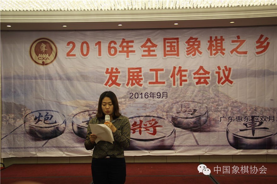 9月27日,2016年全国象棋之乡发展工作会议开幕式在广东惠东县举行。国家体育总局棋牌运动管理中心副主任、中国象棋协会主席陈泽兰,中国象棋协会秘书长郭莉萍,广东省棋牌运动管理中心主任吕钦,惠州市体育局局长许国安、惠东县委常委、宣传部长徐海东以及惠东县体育局局长杨海明以及9个全国象棋之乡的代表、相关省市棋牌中心代表参加了本次会议。