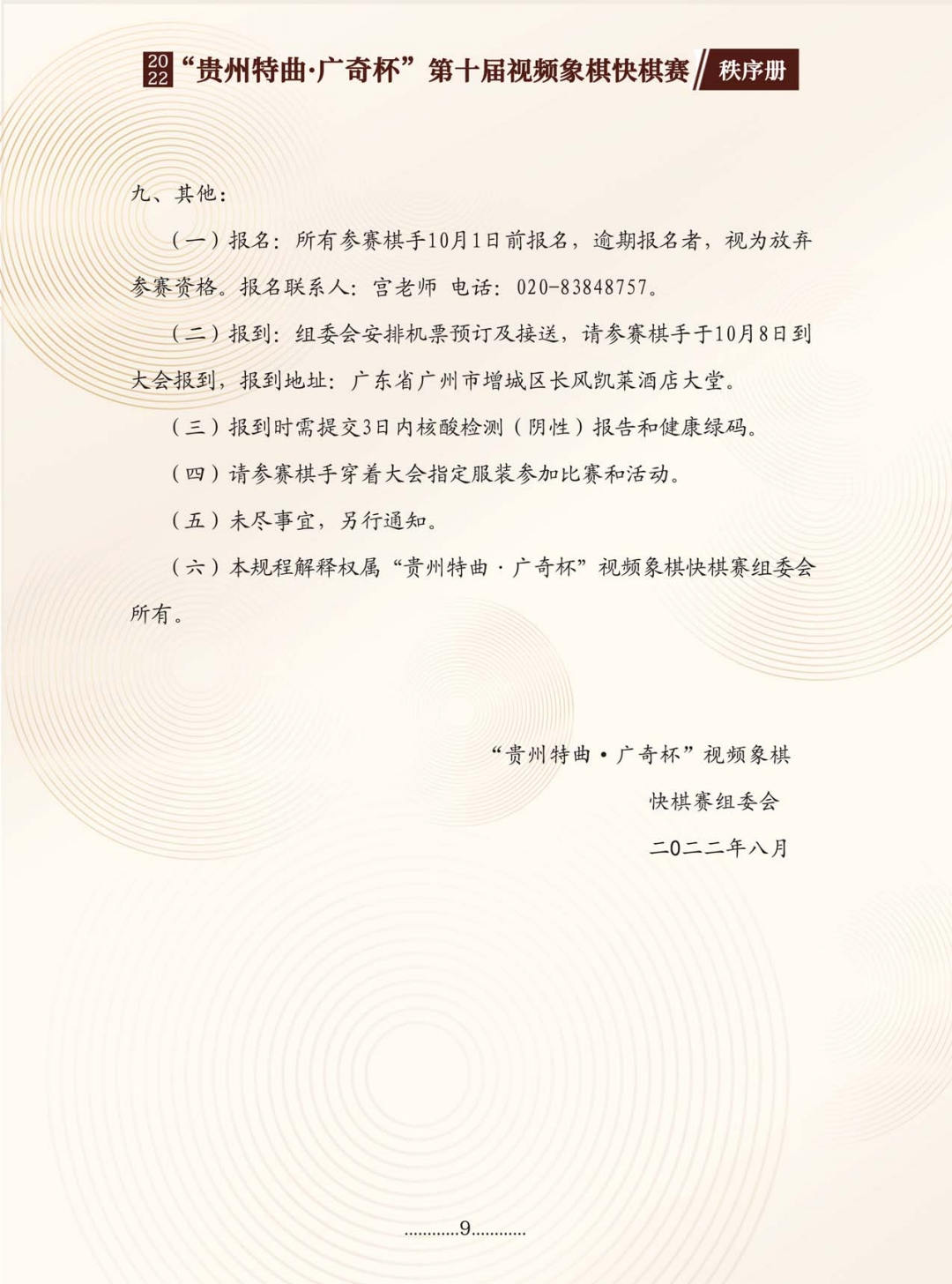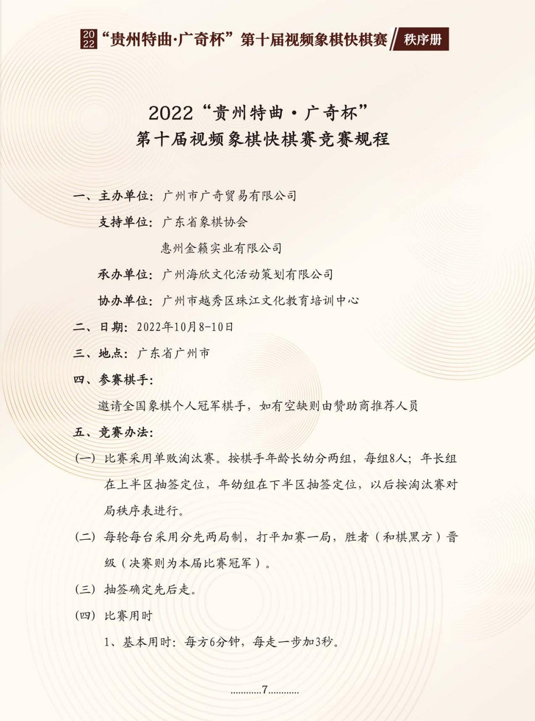 秩序册-2022“贵州特曲·广奇杯”第十届视频象棋快棋赛