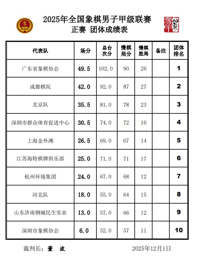 12月1日,2025年全国象棋男子甲级联赛在浙江省金华市落下帷幕。北京队在赛前不看好的情况下,在金牌教练张强的带领下获得季军。值得一提的是,女将唐丹作为北京队一员参赛,在51名棋手中表现出色,获得个人第14名的好成绩。