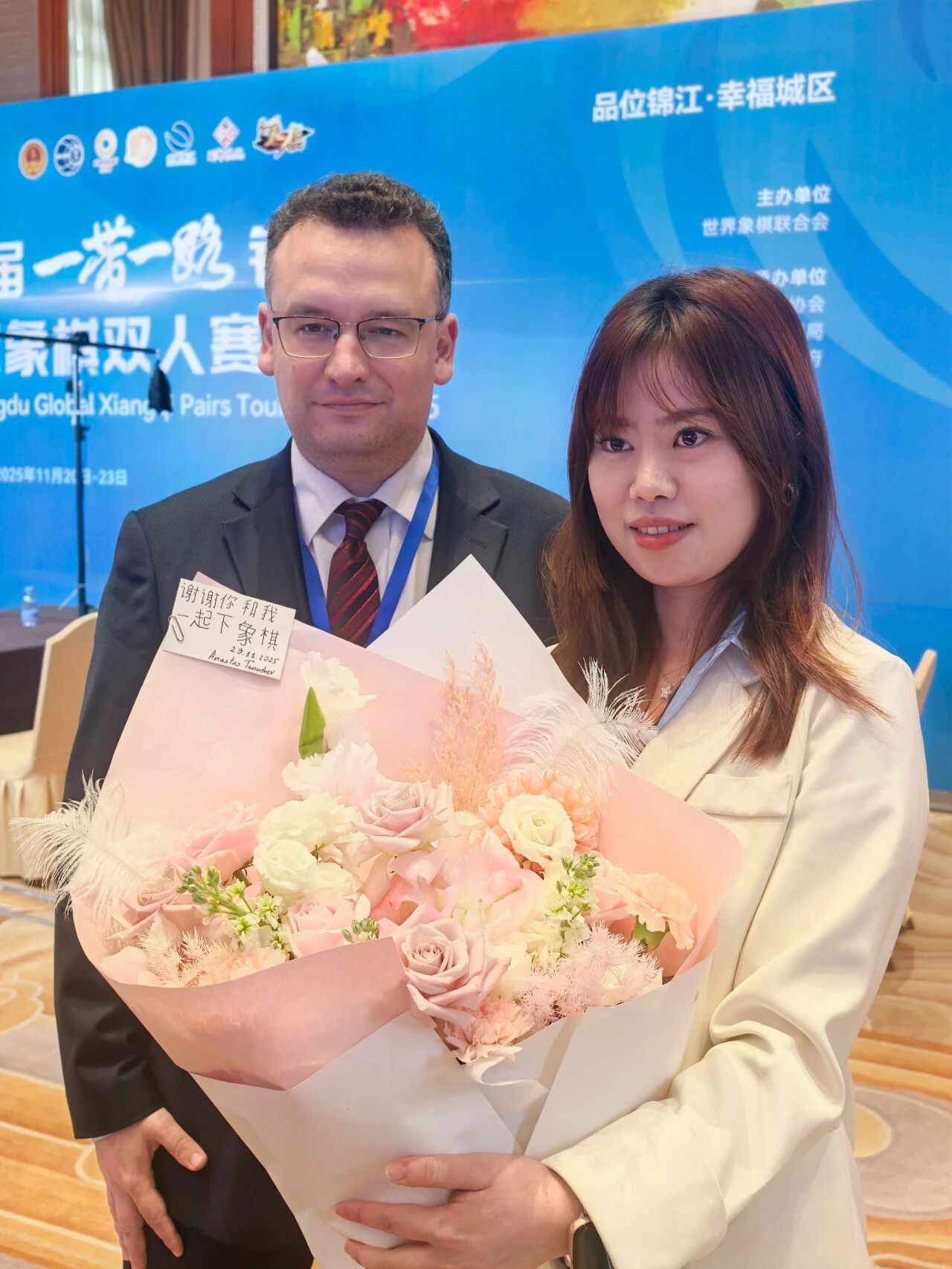 2025年11月23日,第八届"一带一路"锦江杯成都全球象棋双人赛在成都圆满收官。中国香港林嘉欣与中国尹昇组合夺得冠军,获20万元奖金。