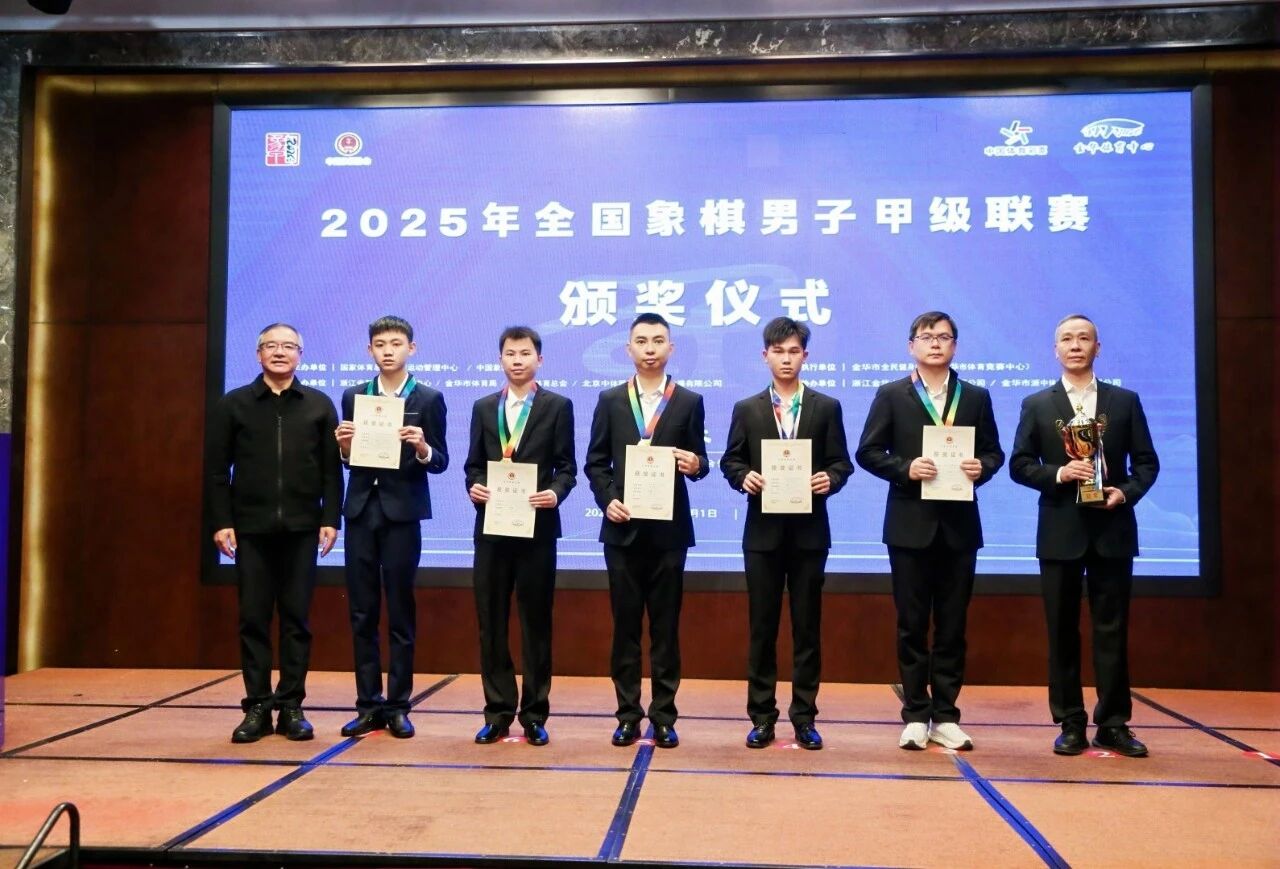 2025年12月1日,2025年全国象棋男子甲级联赛在浙江金华收官。广东省象棋协会队历经18轮角逐保持不败战绩提前两轮锁定冠军,第九次夺得联赛冠军,成都棋院队、北京队分获亚季军。孟辰以30分登顶个人排名,获"最有价值运动员"称号。