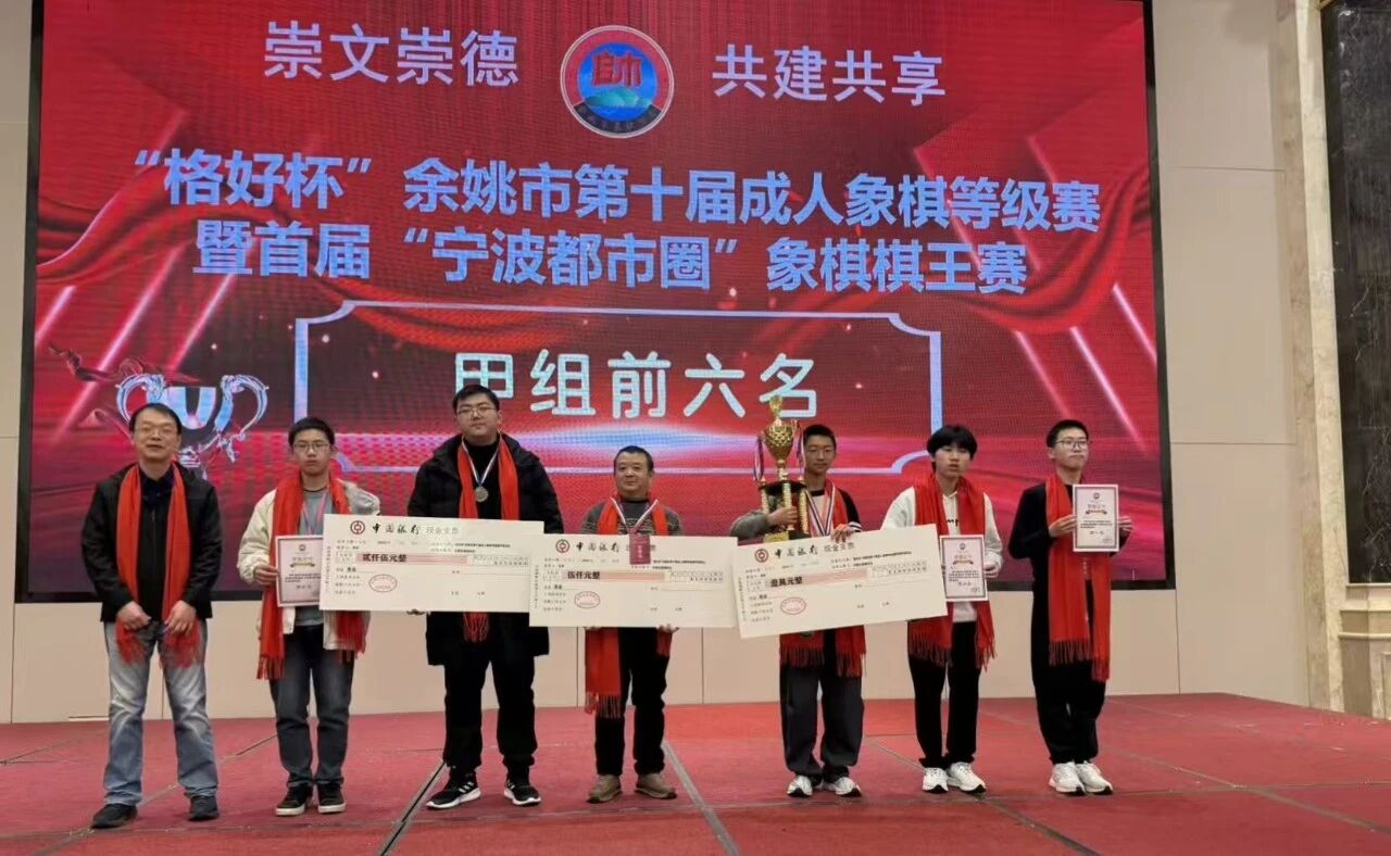 余姚本地棋手汪汉富、陆赟彬、史炳斌等十二位荣获甲A称号。余姚本地乙组屠营法等前六名棋手升入甲B。
