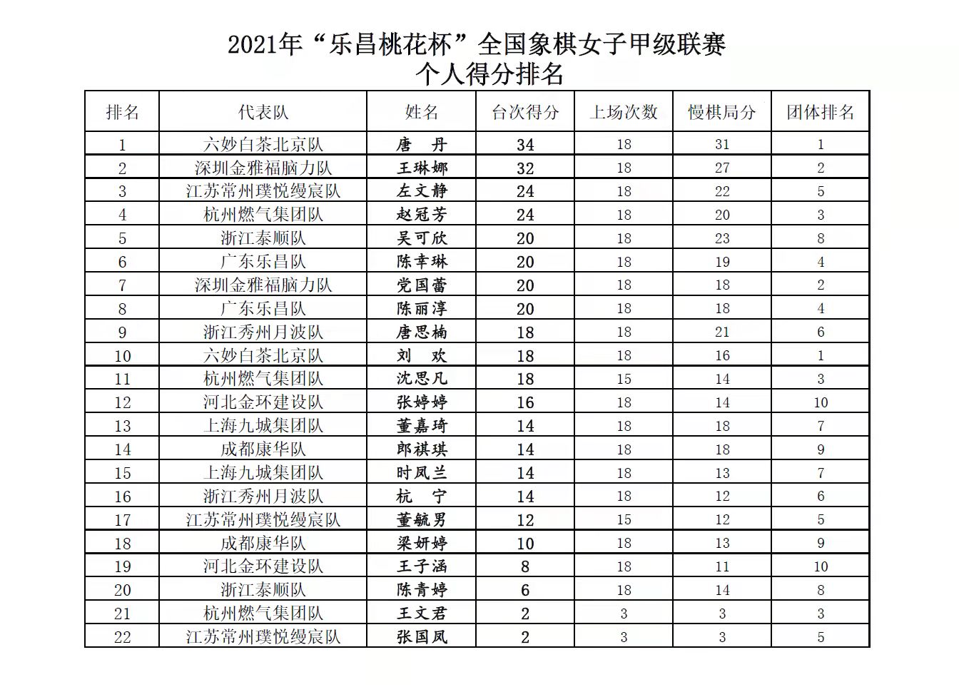 2021年“乐昌桃花杯”全国象棋女子甲级联赛: