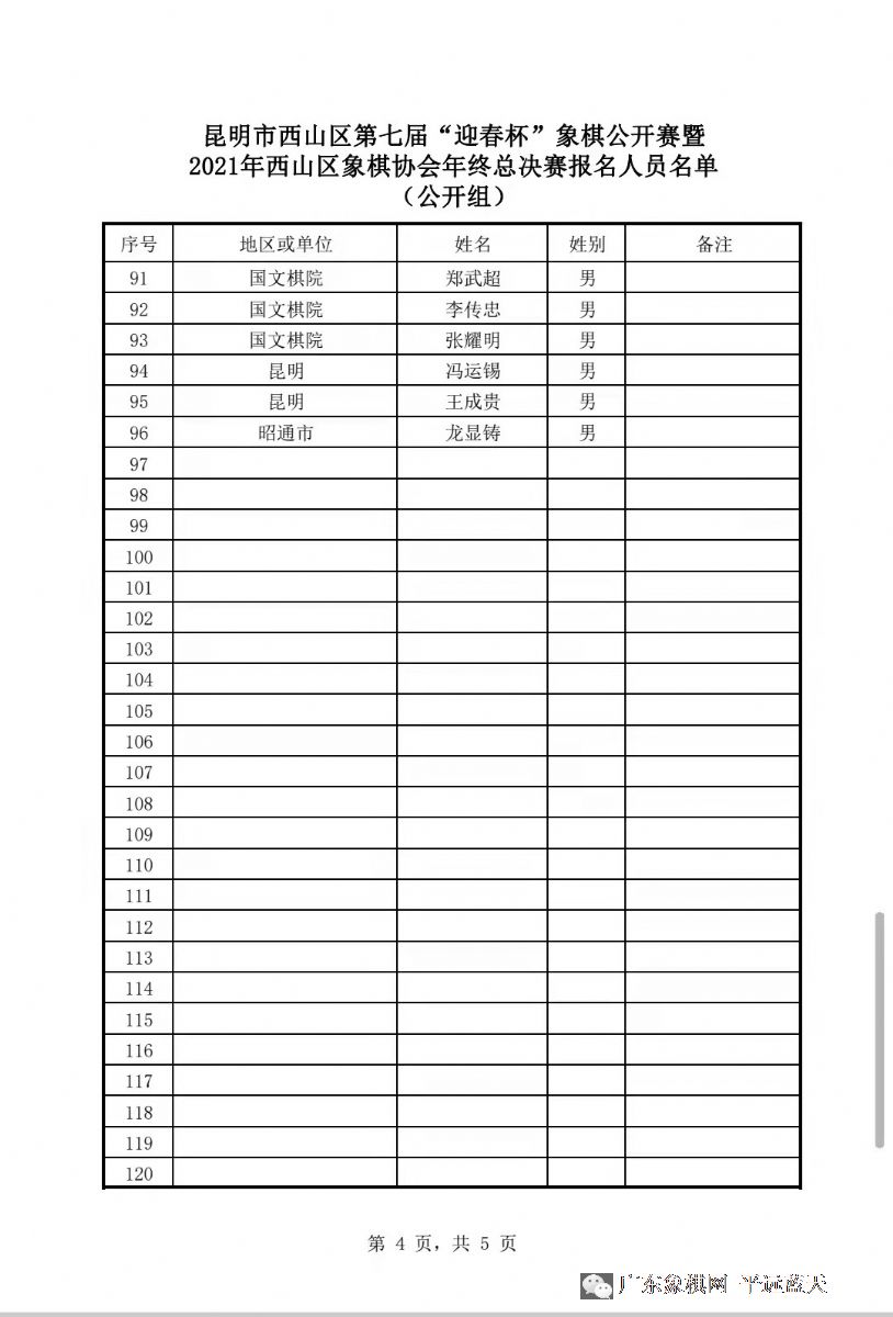 共有 56979 人关注过本帖主题:昆明市西山区第七届“迎春杯”象棋公开赛暨 2021年西山区象棋协会年终总决赛 |