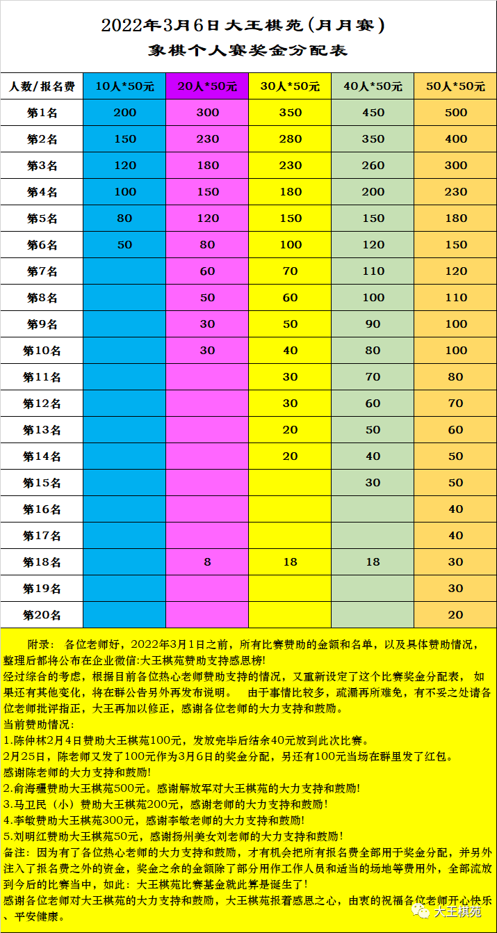 1.限报50人。自助报名费50元,以收到为准。凡身体健康,无突发性疾病的象棋爱好者均可报名参加,比赛当日请配戴口罩、持健康码、行程码参加比赛,并配合工作人员测温、签定责任书等。