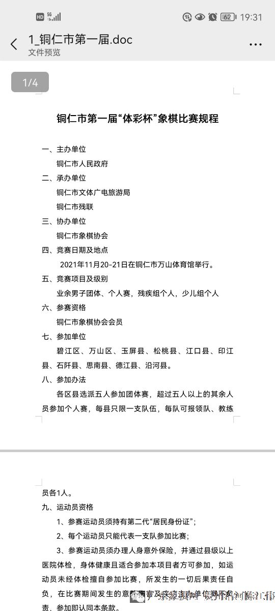 2021贵州铜仁市第一届体彩杯象棋赛规程
