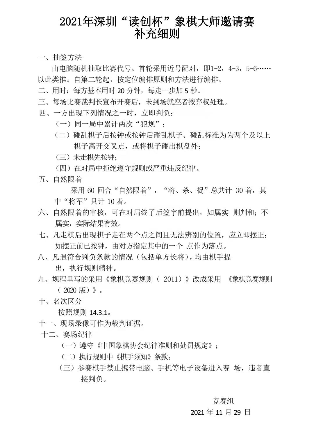 | 2021年深圳“读创杯”象棋大师邀请赛(12月1-3日)