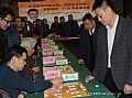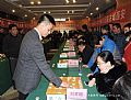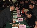 上午,在西安瑞斯丽大酒店,许银川首先和陕西棋友进行了一场一对二十的车轮表演赛。参加车轮战的不仅有西安当地的棋友,还有来自咸阳、宝鸡、渭南、商洛等远道而来的棋友。