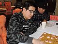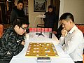 车轮战紧张而有序地进行着。许银川时而快步走过如行云流水,时而驻足观棋双眉紧蹙。棋友们则更是千姿百态:有的棋友走惯了随手棋,只顾猛冲猛打全然不顾自己老将的安危,反正是只要过瘾就成。有的棋友一上来就摆好一个铁桶阵严防死守,希望能借此谋得一个和棋。有的棋友则左顾右盼,希望能从身后众多参谋的棋友口中听到一个最厉害的着法。