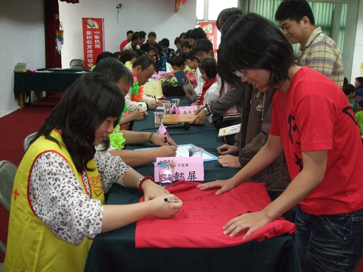 本來,簽名會是『客人』的專利,但是小朋友們熱切的希望吳貴臨棋王、高懿屏棋后也都能參與此次的簽名活動。盛情難卻之下,兩夫婦也列席簽名。