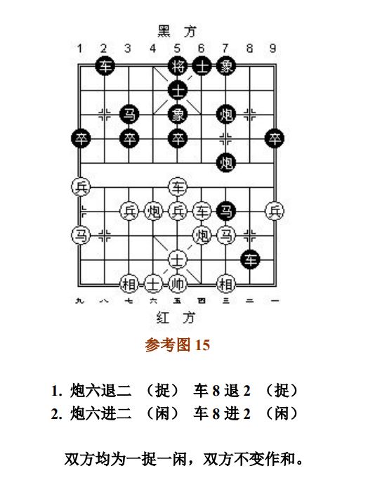 25.2 双方均为允许着法,双方不变作和(参考图15)。