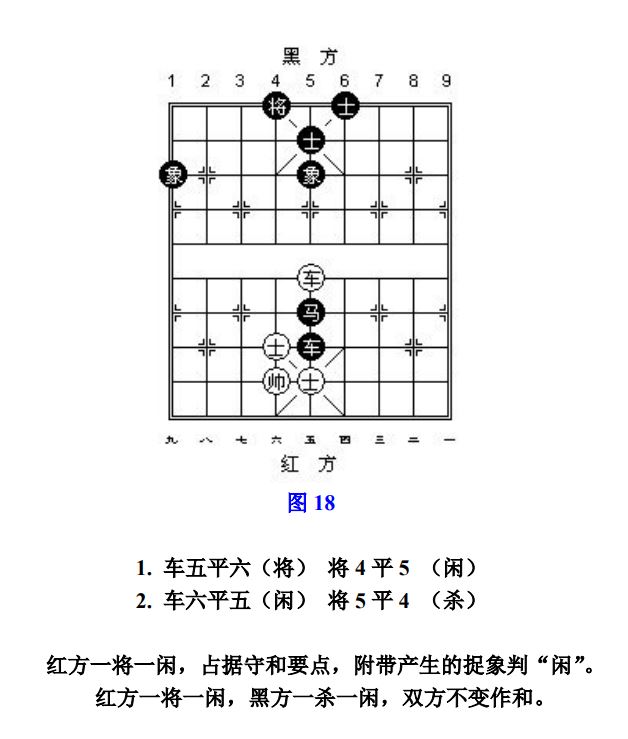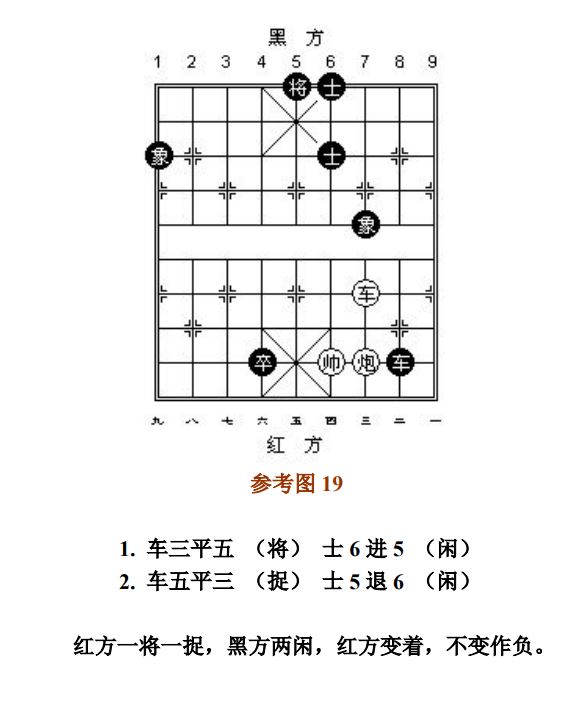 26.2 守和方只有一个进攻子时,占据守和要点,附带产生的捉土象按"闲"处理(图18、参考图19)。