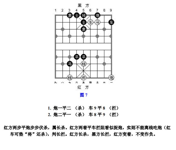 24.10 长杀:凡走子连续不停杀着而形成循环达三次者,称为"长杀"(图7)。